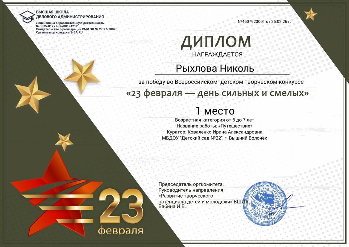 Участие во Всероссийском творческом конкурсе " 23 Февраля - для сильных и смелых"