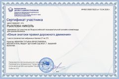 Участие во Всероссийской онлайн - олимпиаде " Юные знатоки правил дорожного движения"